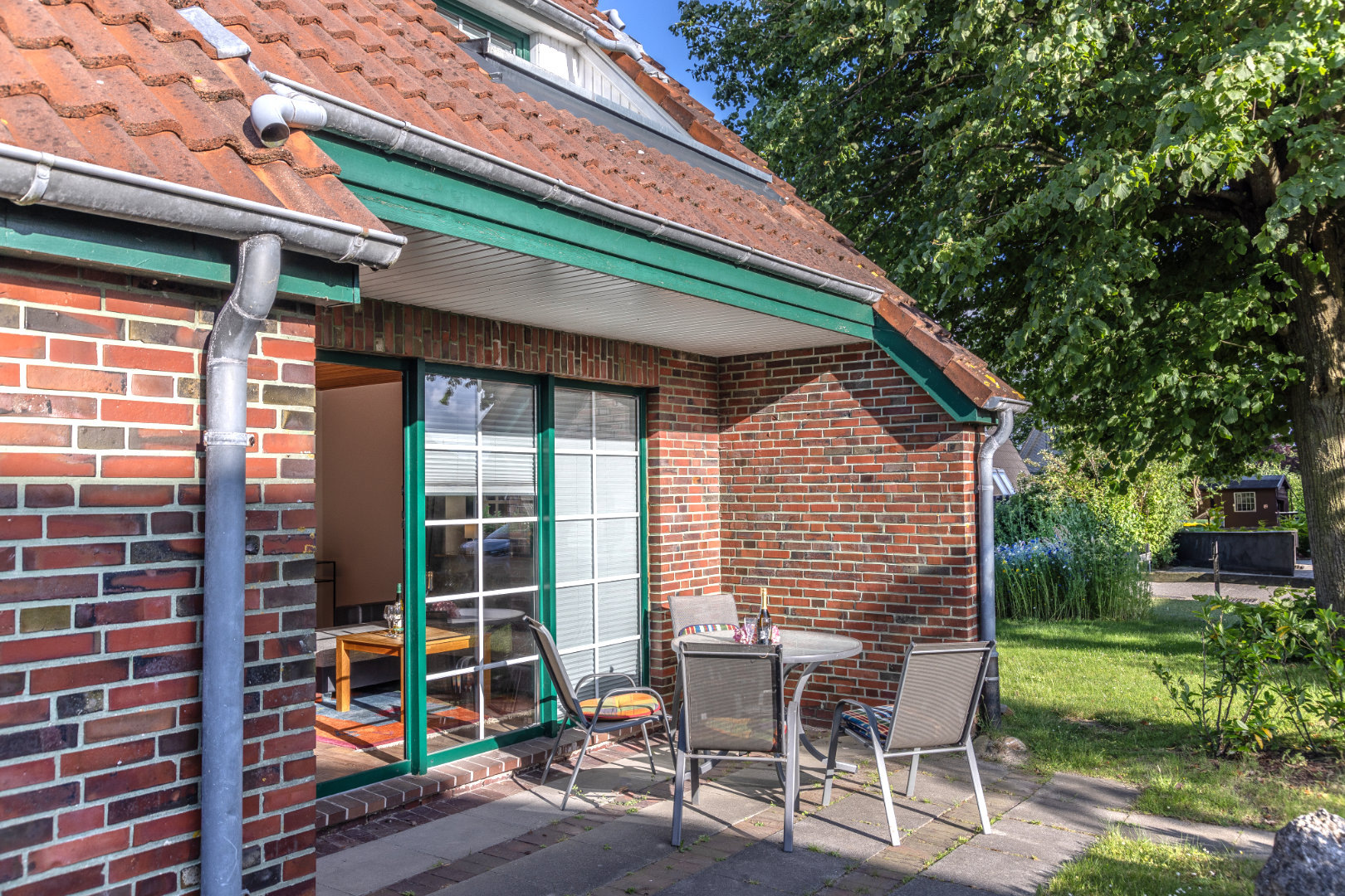 Das Haus Meerglück bietet komfortables Wohnen auf einer Ebene mit zwei gemütlichen Schlafzimmern und einem Badezimmer, ausgestattet mit Waschmaschine und Trockner. Im Außenbereich laden Gartenmöbel, Sonnenliegen und ein Grill zu entspannten Stunden an der frischen Luft ein.